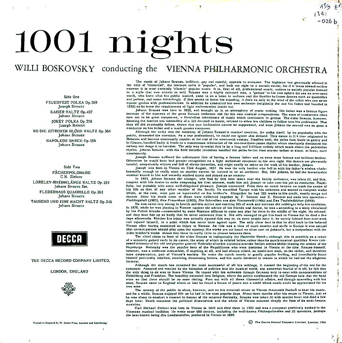 商品コード:1341-026b[DECCA] W.ボスコフスキー指揮/ 1001nights/鍛冶屋, 皇帝円舞曲, 騎手 他全9曲