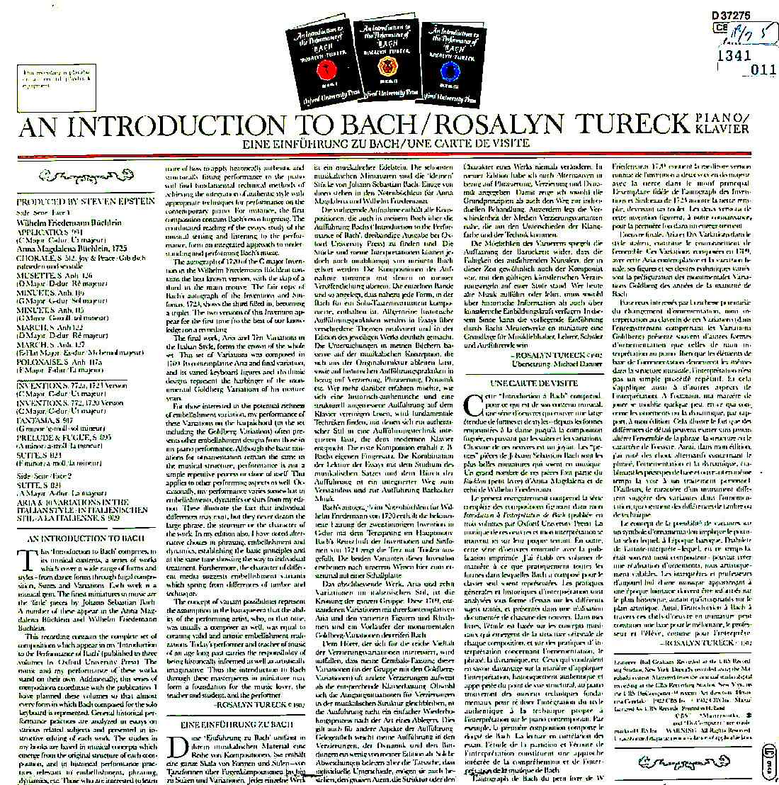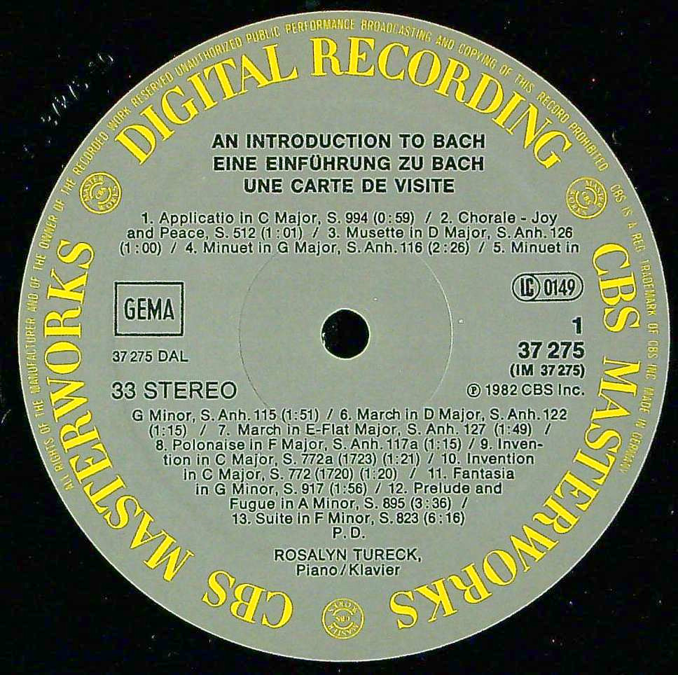 商品コード:1341-011[CBS] R.テュレック(pf) / An Introduction to BACH