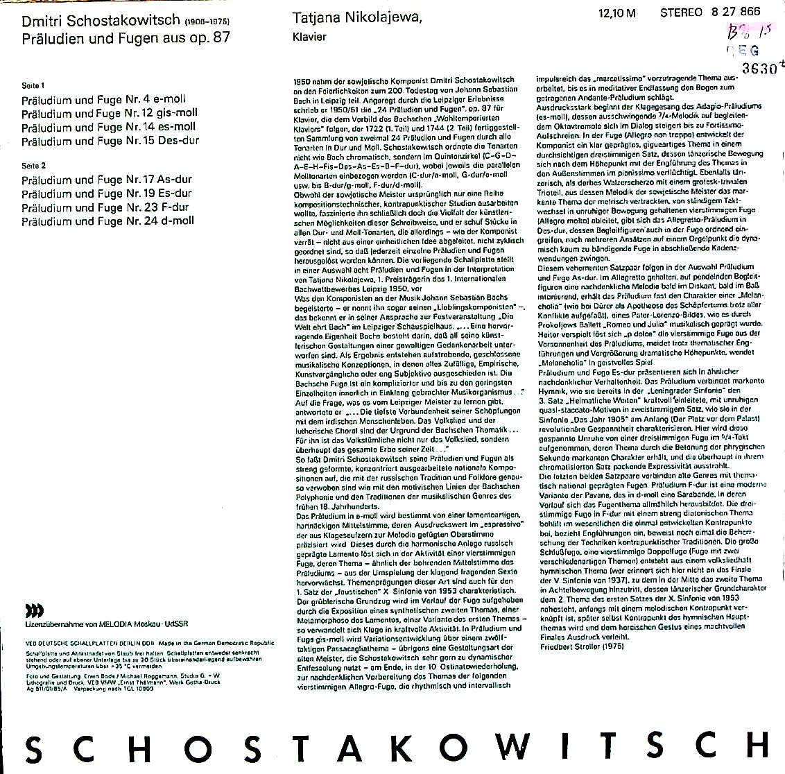 商品コード:REG-3630t[東独ETERNA] T.ニコラーエワ(pf) / ショスタコーヴィチ:前奏曲とフーガ(8曲)