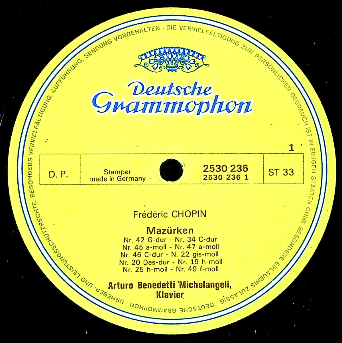 商品コード:REG-3618[仏DGG] A.B.ミケランジェリ(pf) / ショパン:マズルカ(10曲) 他