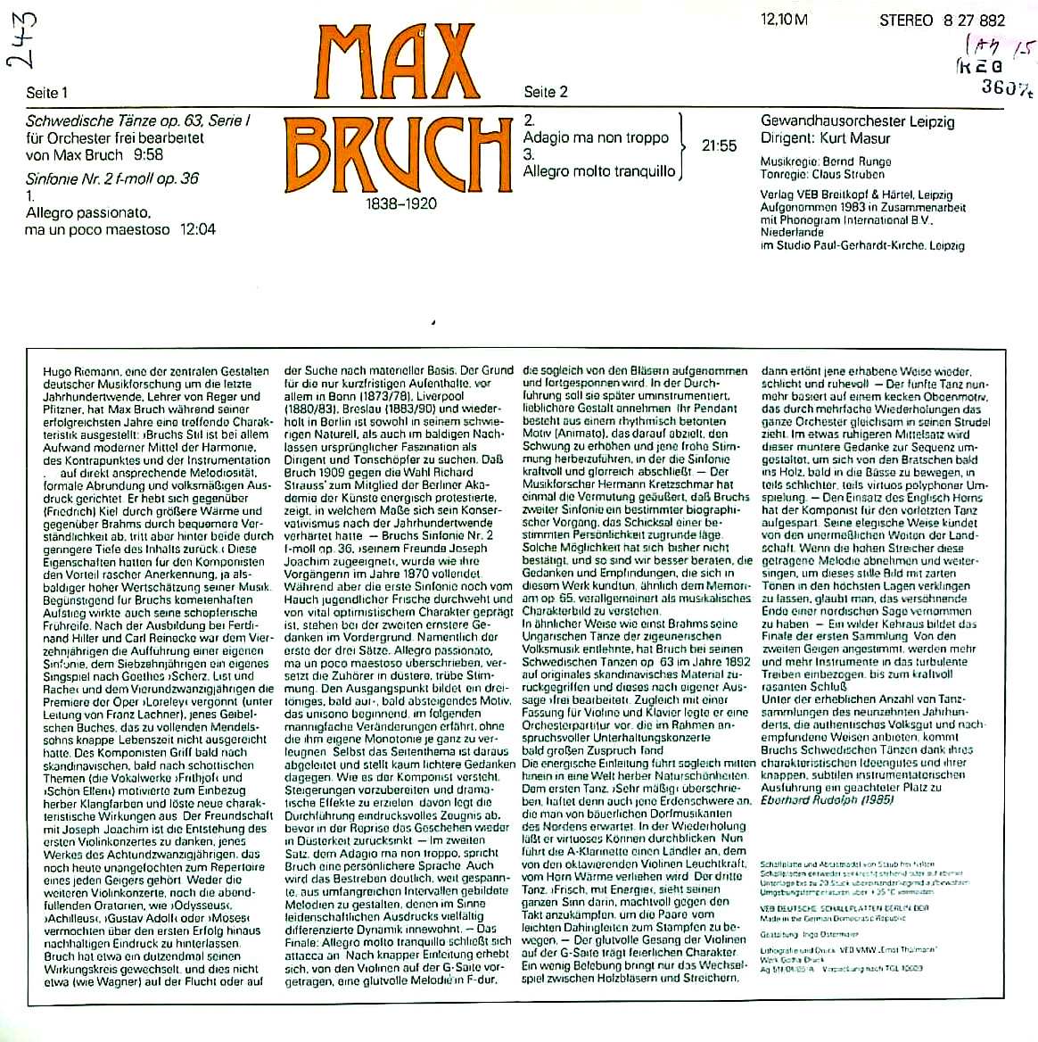 作品名:ブルッフ:スウェ-デン舞曲 第1集, 交響曲2番Op.36