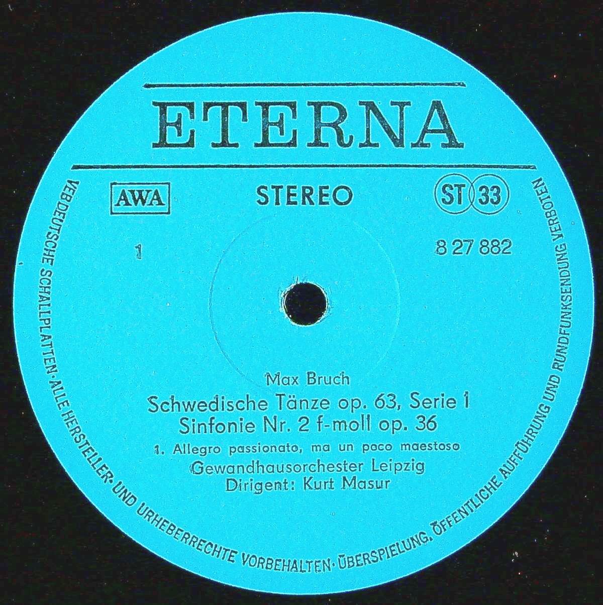 商品コード:REG-3607t[東独ETERNA] K.マズア指揮/ ブルッフ:スウェ-デン舞曲 第1集, 交響曲2番