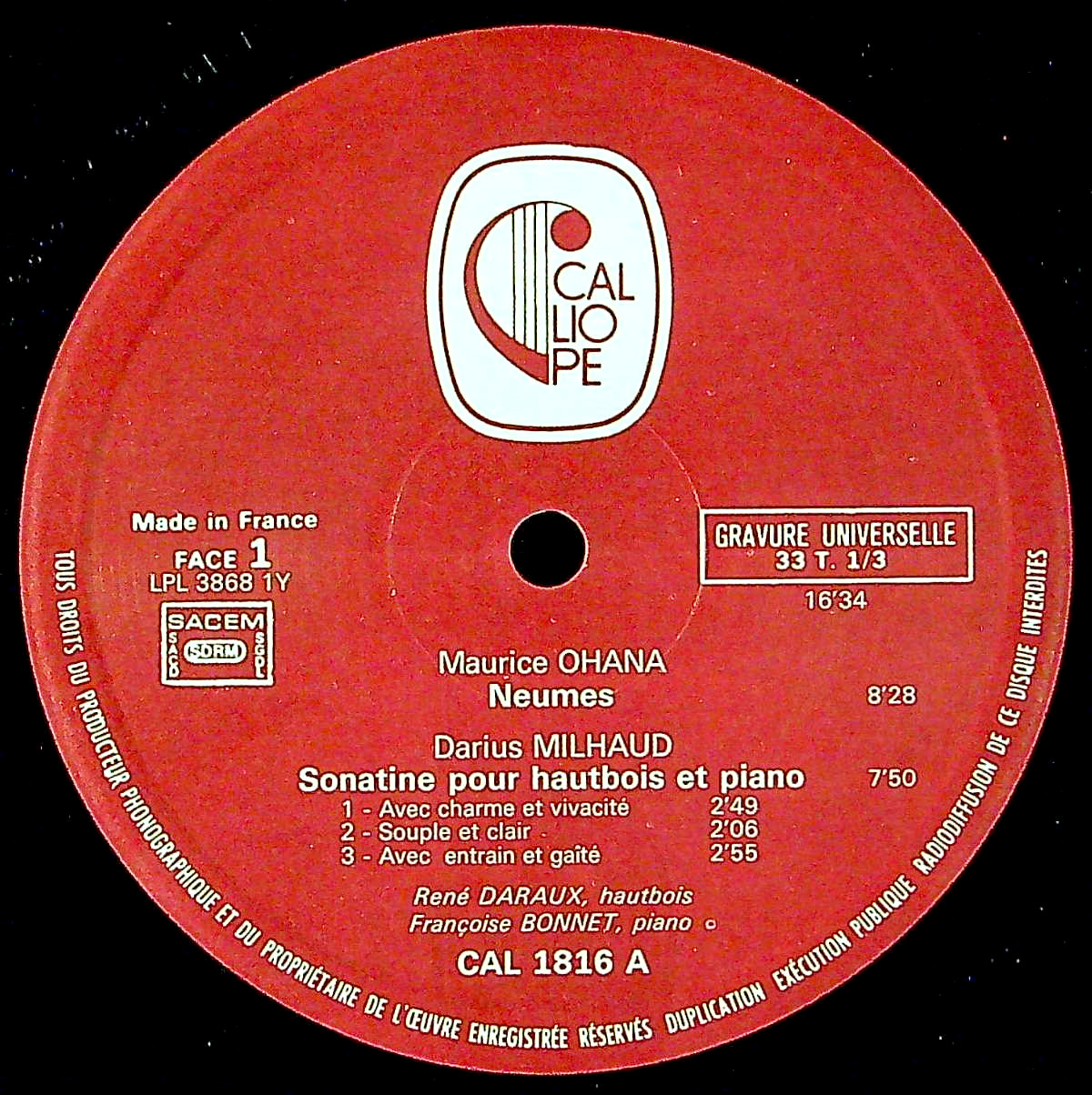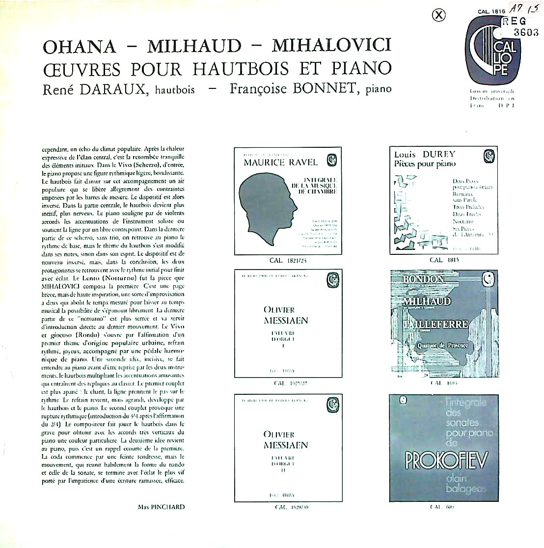 商品コード:REG-3603[仏CALLIOPE] R.ダロー(ob)/ フランス現代Ob作品集/オアナ, ミヨー, ミハロヴィチ