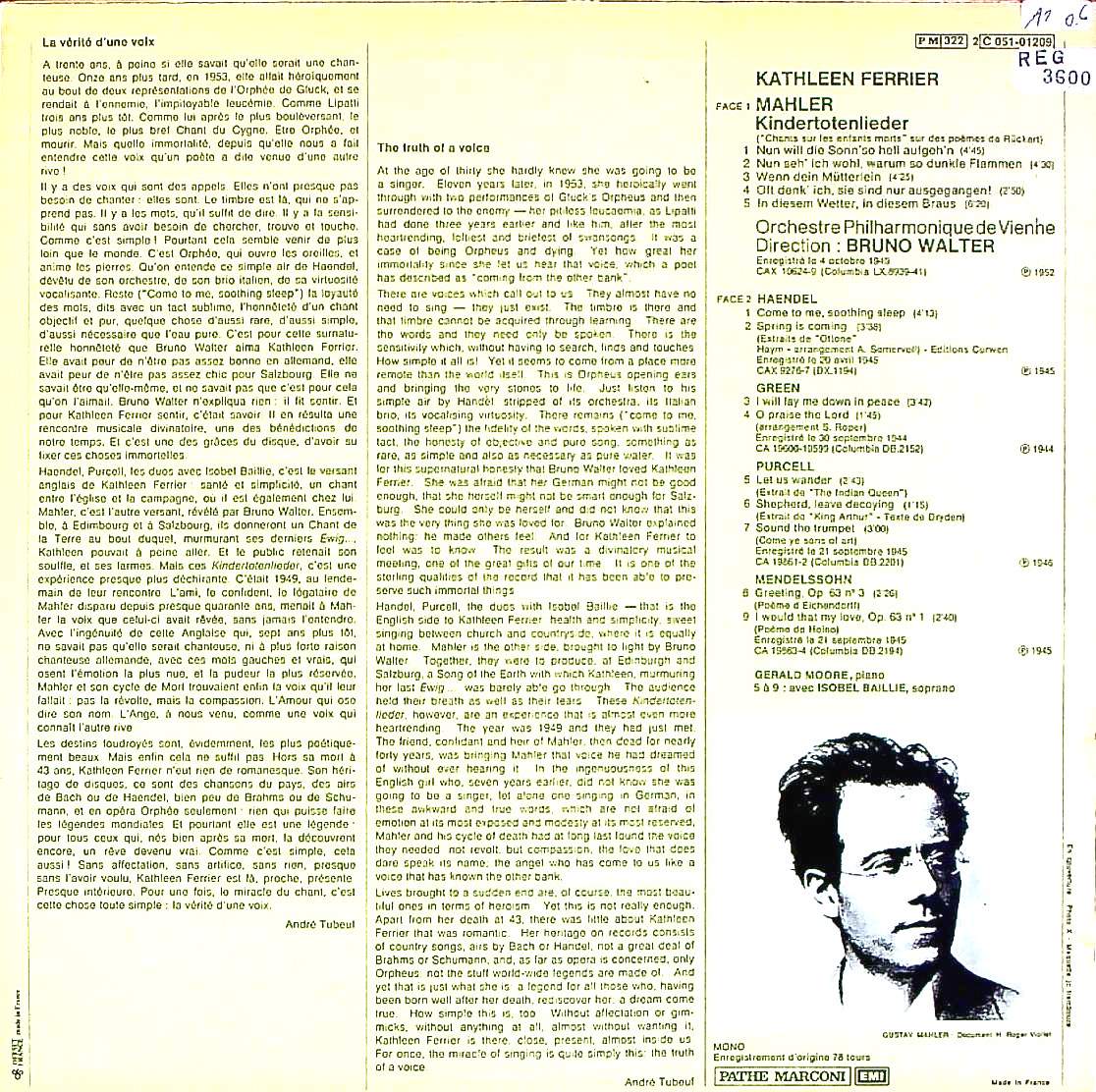 演奏者:K.フェリアー(ca)B.ワルター指揮ウィーンpo. I.ベイリー(s)G.ムーア(pf)