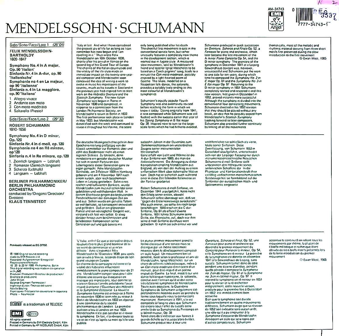 商品コード:REG-3597t[米ANGEL] K.テンシュテット指揮/ メンデルスゾーン:交響曲4番「イタリア」, シューマン:交響曲4番