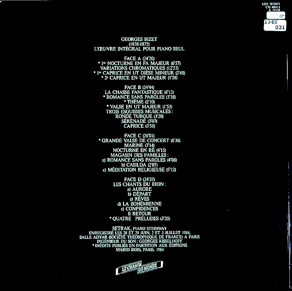 商品コード:1342-031[Chant du Monde] セトラック・ヤブルヤン(pf) / ビゼー:Pf独奏曲全集