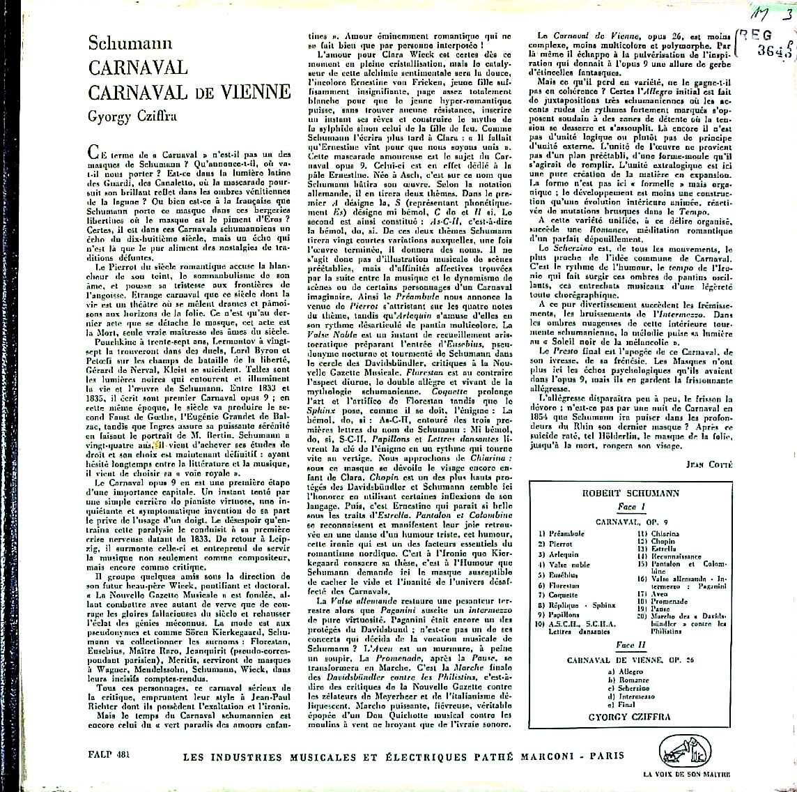 商品コード:REG-3643p[仏VSM] G.シフラ(pf) / シューマン:謝肉祭, ウィーンの謝肉祭
