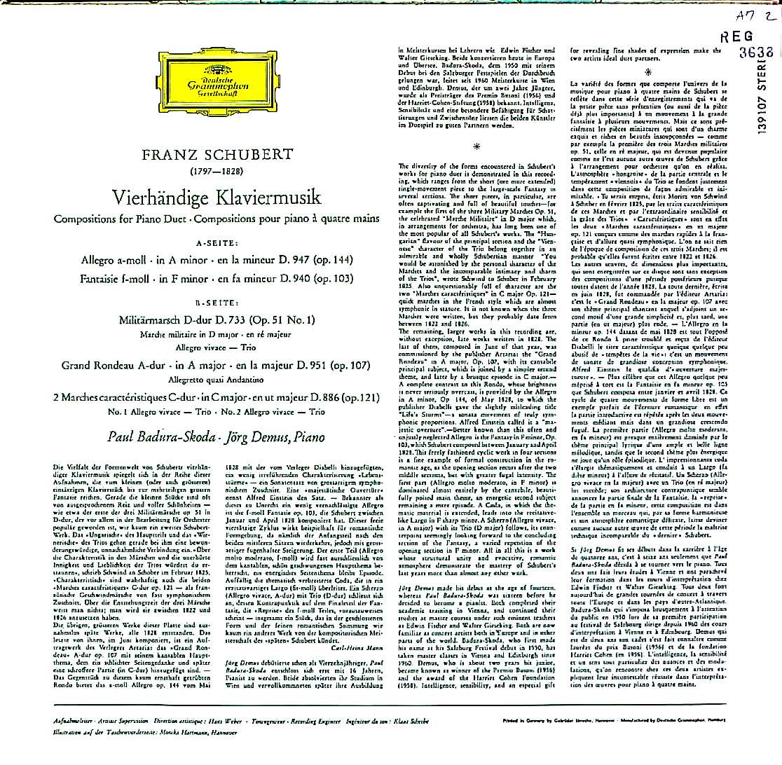 商品コード:REG-3638[独DGG] P.バドゥラ・スコダ, J.デムス(pf) / シューベルト:連弾集