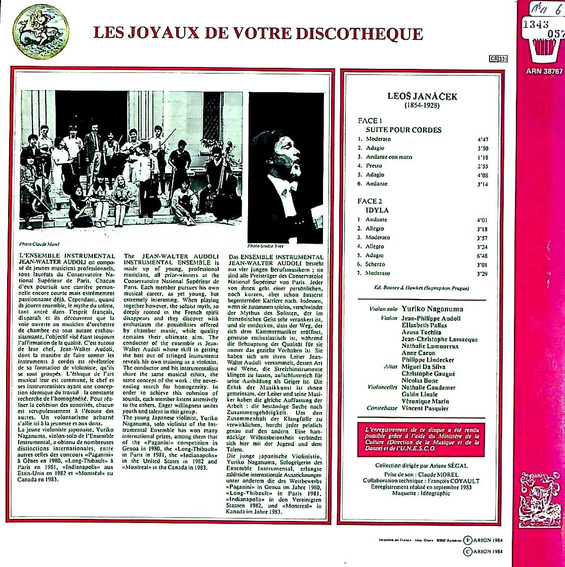 商品コード:1343-057[ARION] J.W.オードリ指揮 長沼百合子(vn) / ヤナーチェク:弦楽のための組曲(全6曲), 弦楽のための牧歌(全7曲)