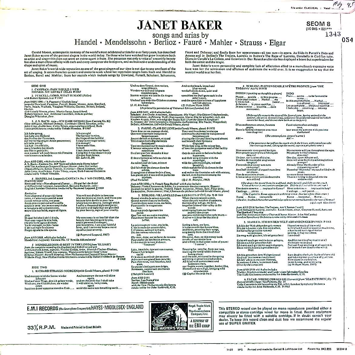 商品コード:1343-054[HMV] J.ベイカー(ms)/ 歌曲・アリア集/パーセル, バッハ, ヘンデル 他
