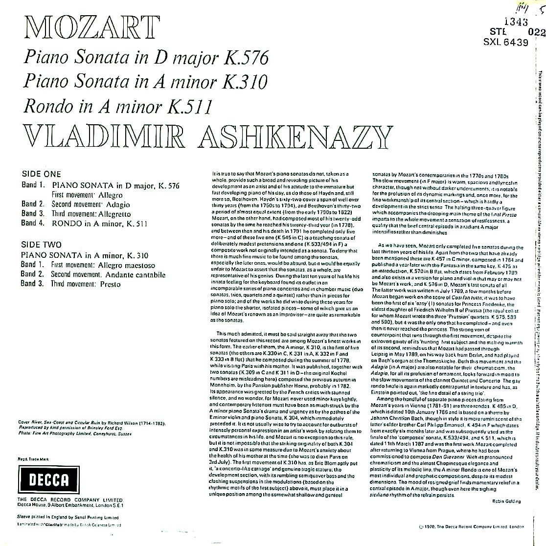 商品コード:1343-022n[DECCA] V.アシュケナージ(pf) / モーツァルト:Pfソナタ17, 8番, ロンドK.511