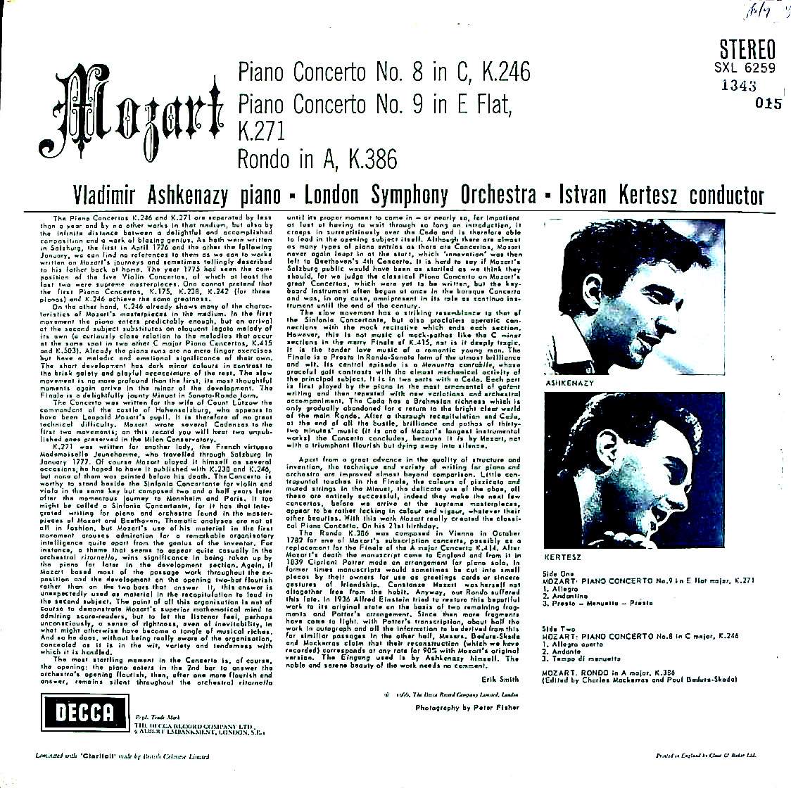 商品コード:1343-015[DECCA] V.アシュケナージ(pf)/ モーツァルト:Pf協奏曲8, 9番