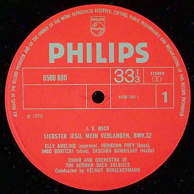 商品コード:1343-013b[PHILIPS] E.アーメリング(s) H.ヴィンシャマン指揮/ バッハ:カンタータ32, 57番