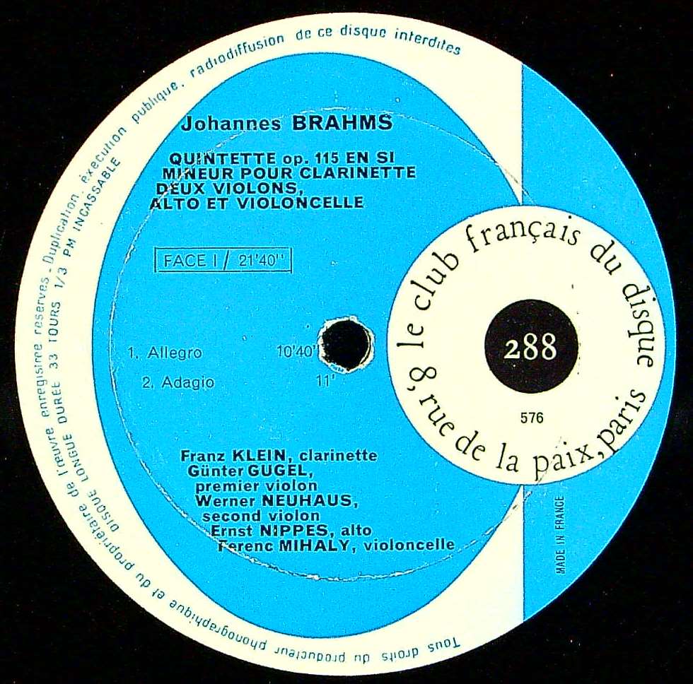 商品コード:1344-062[Club Français] F.クライン(cl) ケルンQt./ ブラームス:Cl五重奏曲