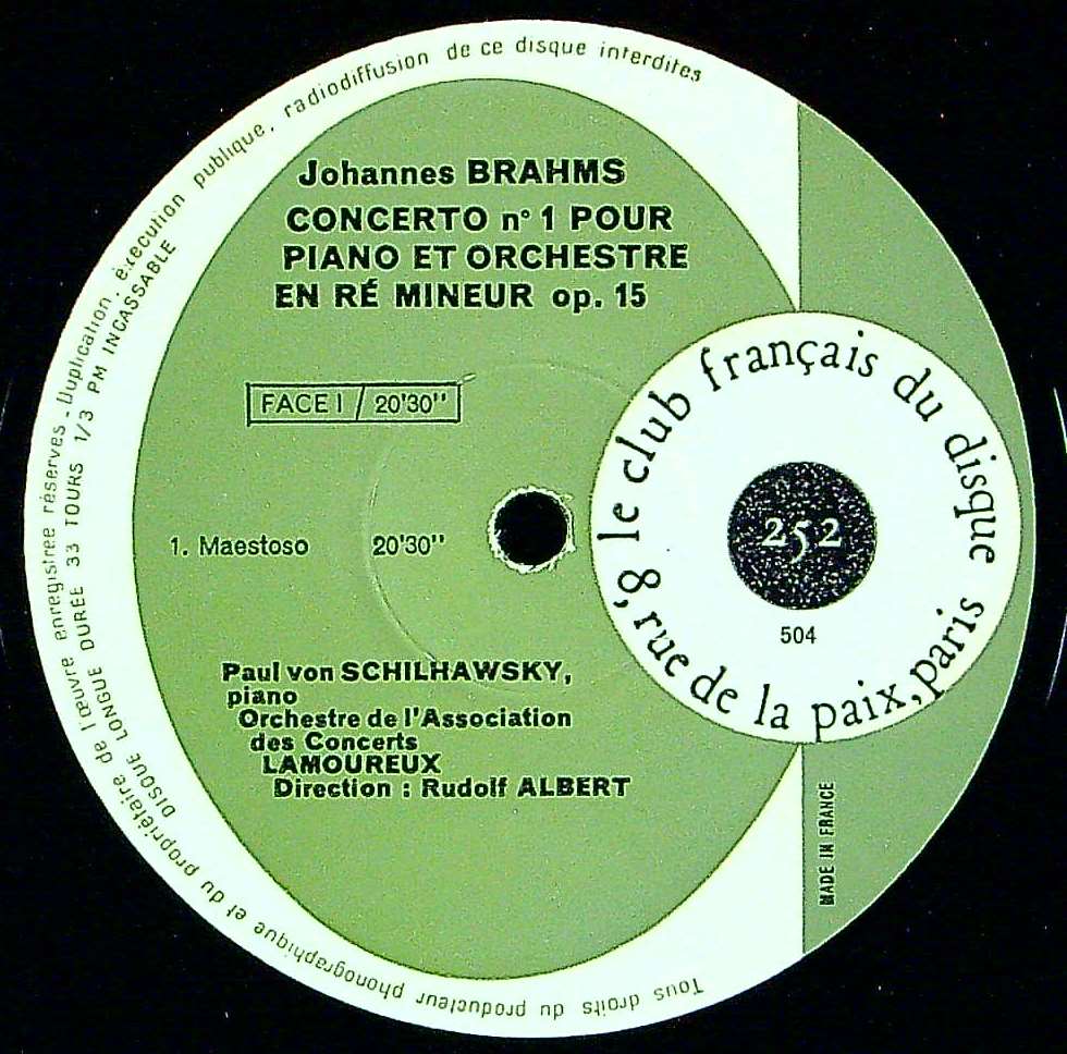 商品コード:1344-059[Club Français] P.v.シルハフスキー(pf)/ ブラームス:Pf協奏曲1番