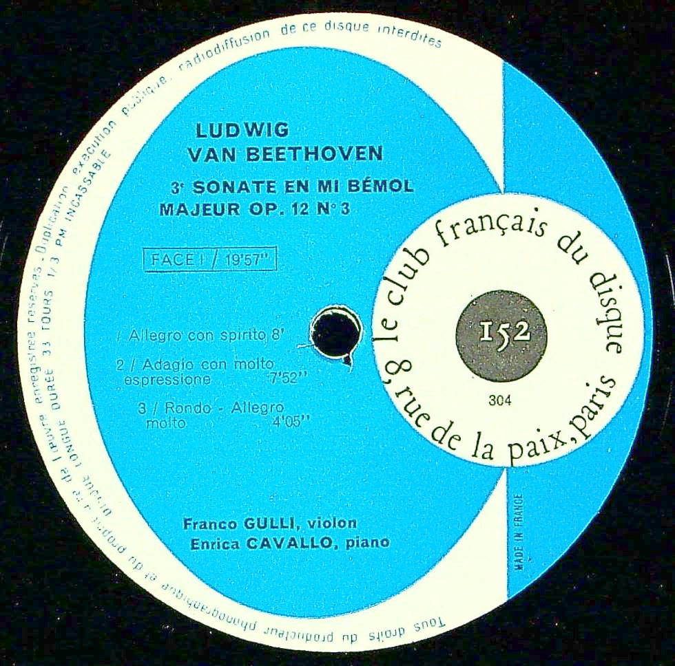 商品コード:1344-052[Club Français] F.グッリ(vn)/ ベートーヴェン:Vnソナタ全集-2/Vnソナタ3, 4番