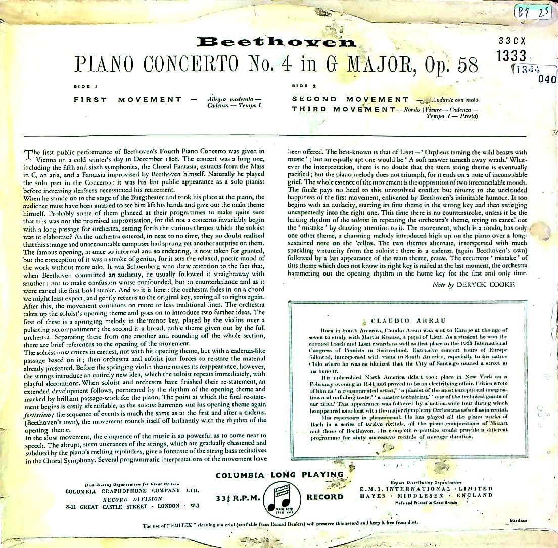 商品コード:1344-040p[COLUMBIA] C.アラウ(pf)/ ベートーヴェン:Pf協奏曲4番