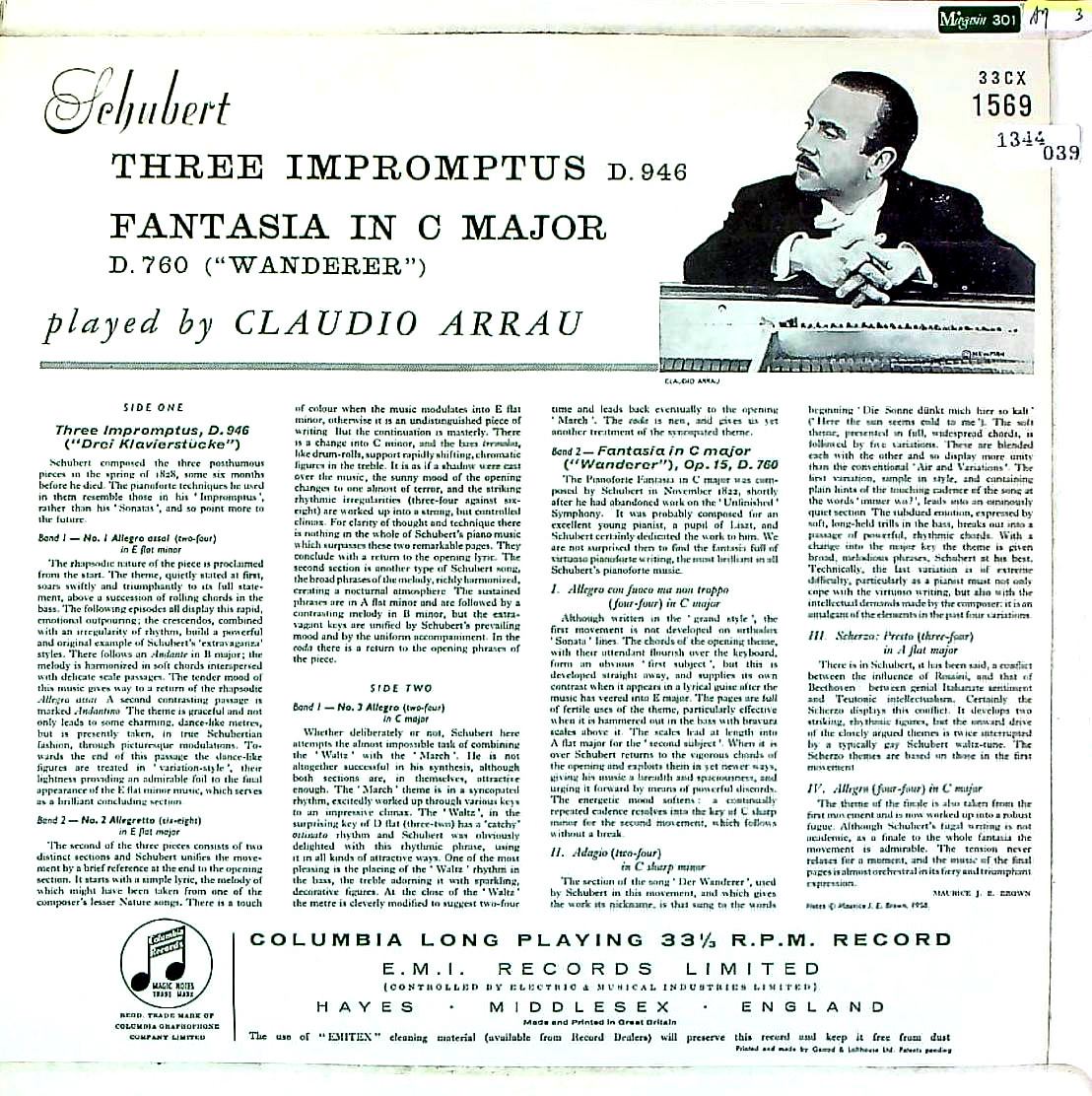 商品コード:1344-039n[COLUMBIA] C.アラウ(pf) / シューベルト:3つの即興曲, さすらい人幻想曲