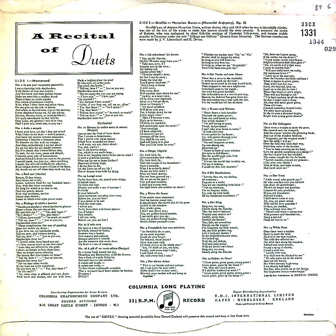 商品コード:1344-029[COLUMBIA] E.シュヴァルツコップ, I.ゼーフリート(s)/ ドヴォルザーク:モラヴィア二重唱曲集 他