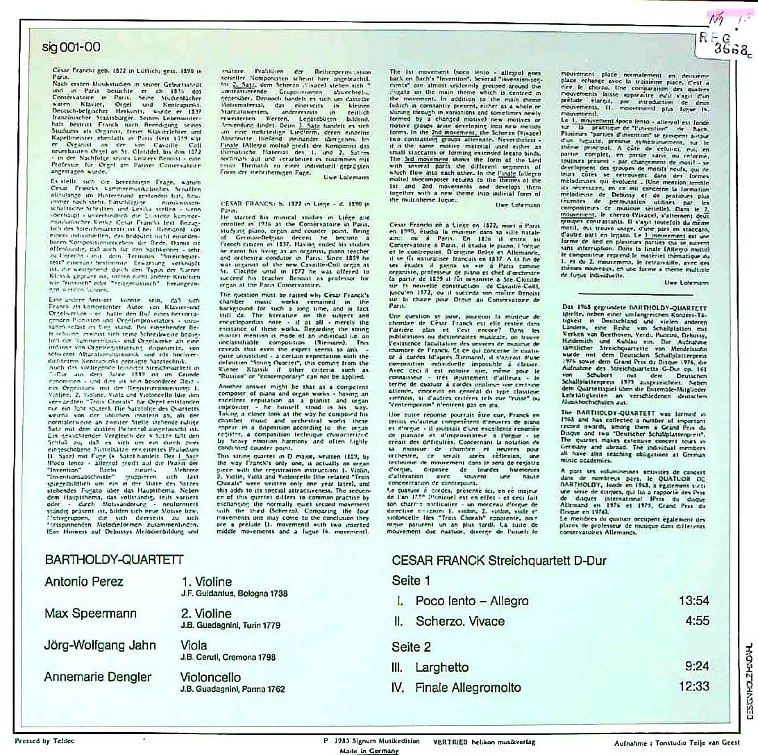 商品コード:REG-3668t[独SIGNUM] バルトルディQt. / フランク:弦楽四重奏曲