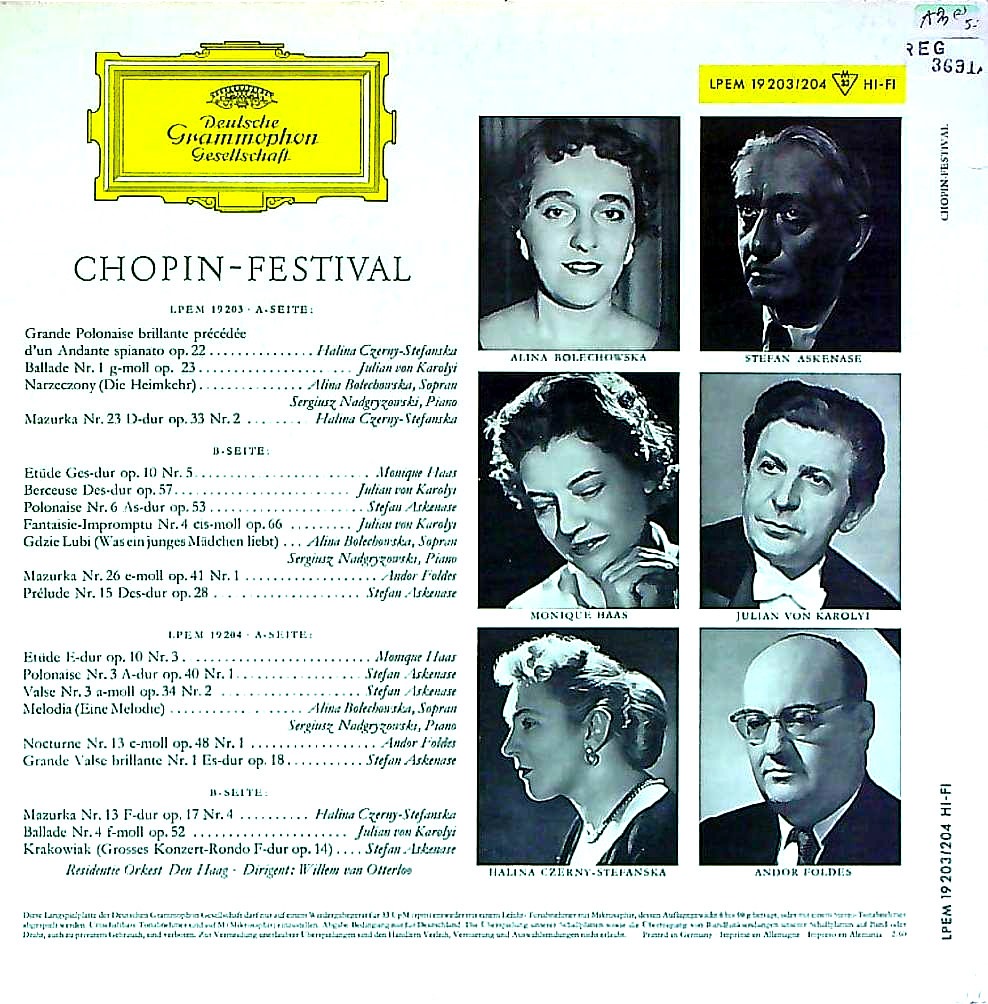 商品コード:REG-3691p[独DGG] A.ボレコウスカ(s) S.アシュケナージ(vn) 他/ ショパン・フェスティバル