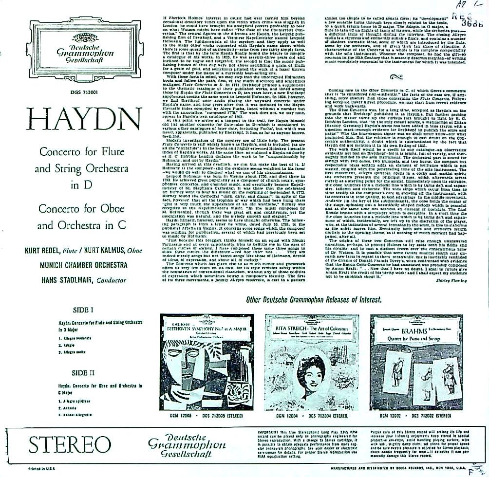 商品コード:REG-3686[米DGG] K.レーデル(fl) K.カルムス(ob)/ ハイドン:Fl協奏曲, Ob協奏曲