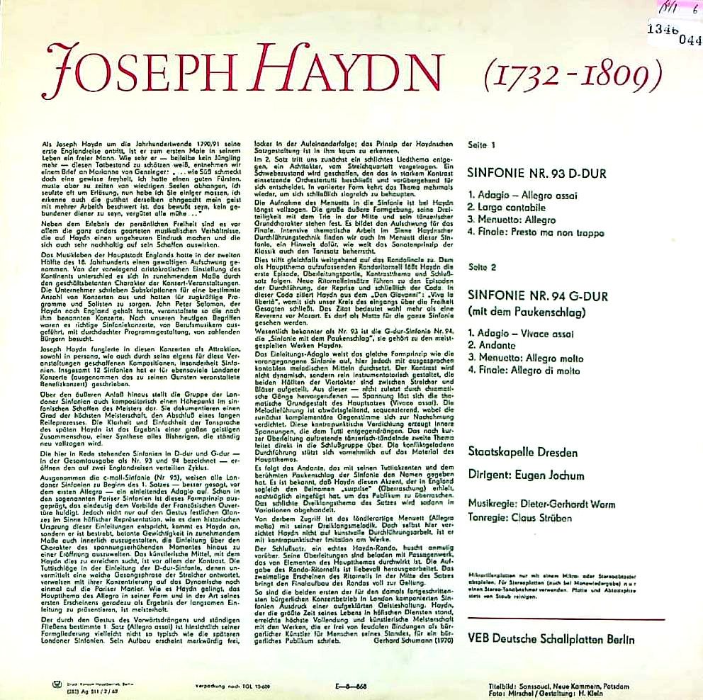 商品コード:1346-044t[ETERNA] E.ヨッフム指揮/ ハイドン:交響曲93番, 94番「驚愕」