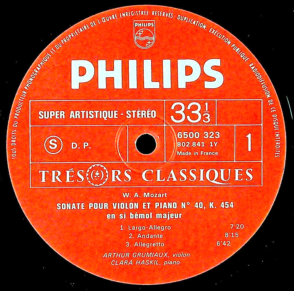 商品コード:1346-023[PHILIPS] A.グリュミオー(vn) C.ハスキル(pf) / モーツァルト:Vnソナタ18, 21, 24, 36, 40, 42番