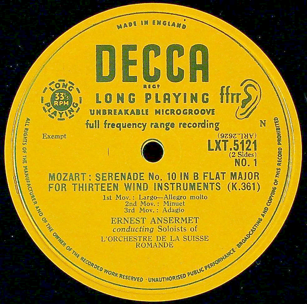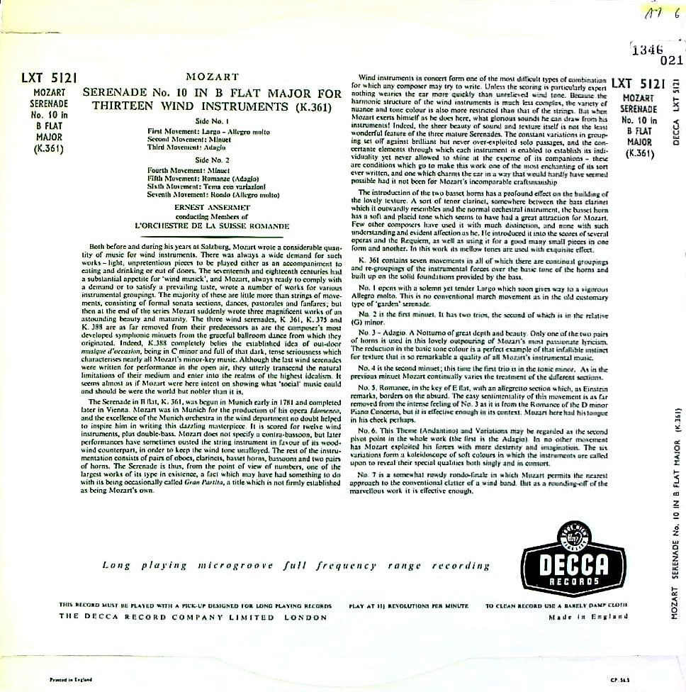 商品コード:1346-021n[DECCA] E.アンセルメ指揮/ モーツァルト:セレナーデ10番K.361「グラン・パルティータ」