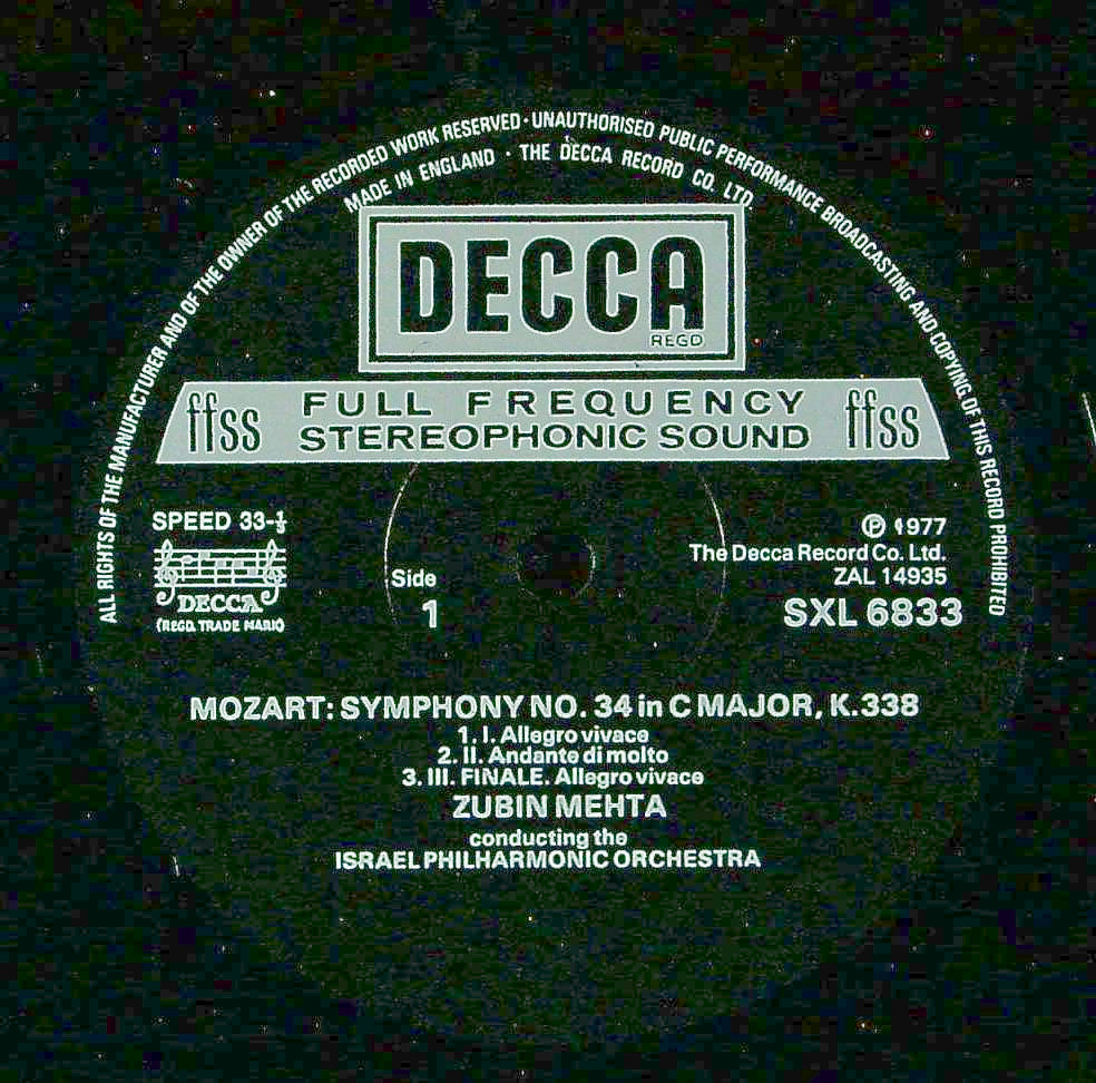 商品コード:1346-019b[DECCA] Z.メータ指揮/ モーツァルト:交響曲34, 39番K.338, 543