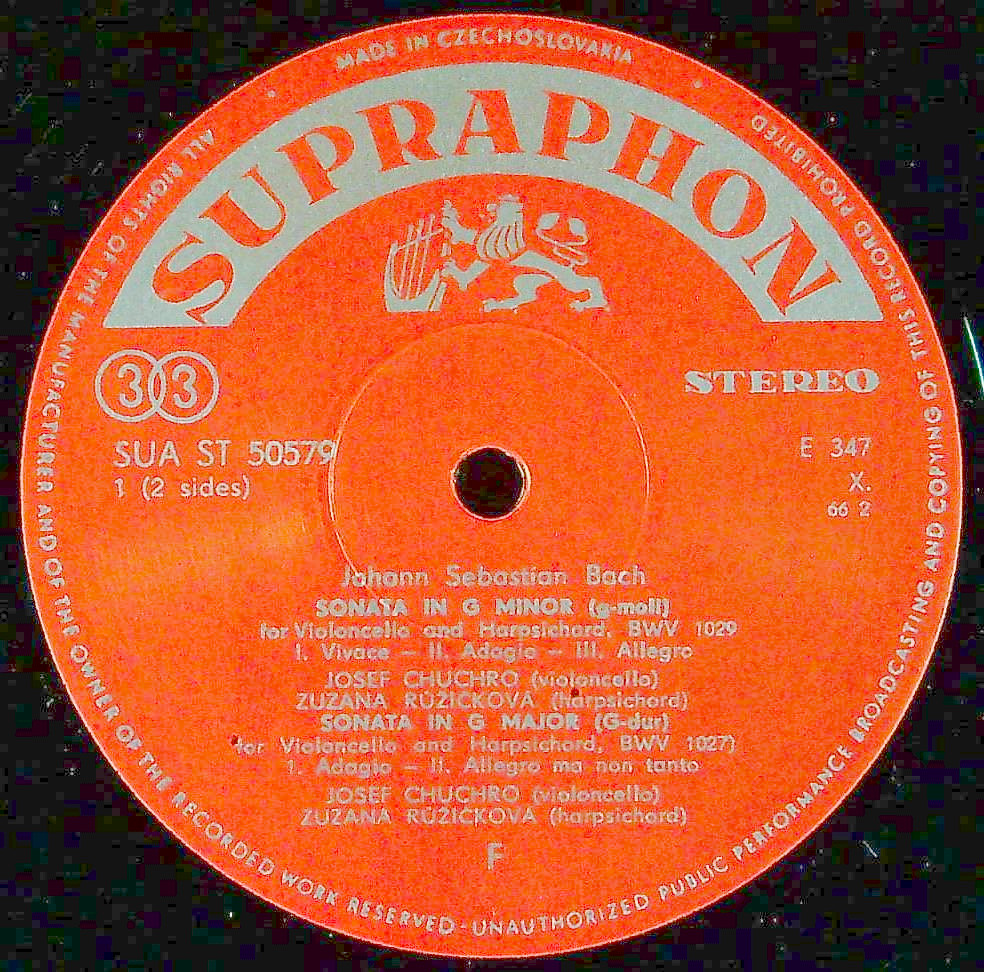 商品コード:1346-010n[SUPRAPHON] J.フッフロ(vc) Z.ルージチコヴァー(cemb) / バッハ:Vcソナタ(全3曲)