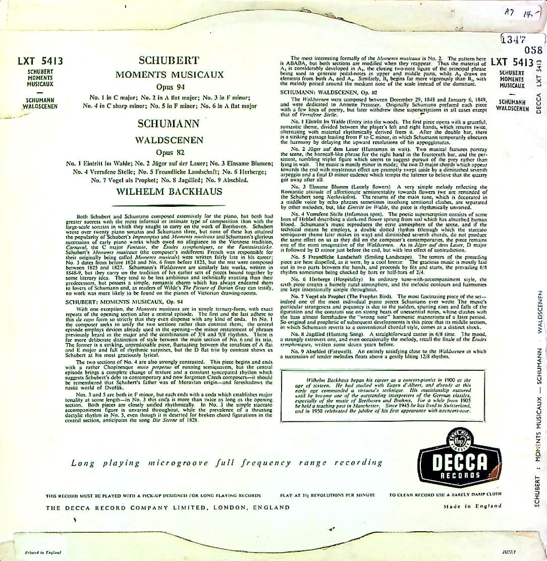 商品コード:1347-058[DECCA] W.バックハウス(pf) / シューベルト:楽興の時(全6曲), シューマン:森の情景(全9曲)