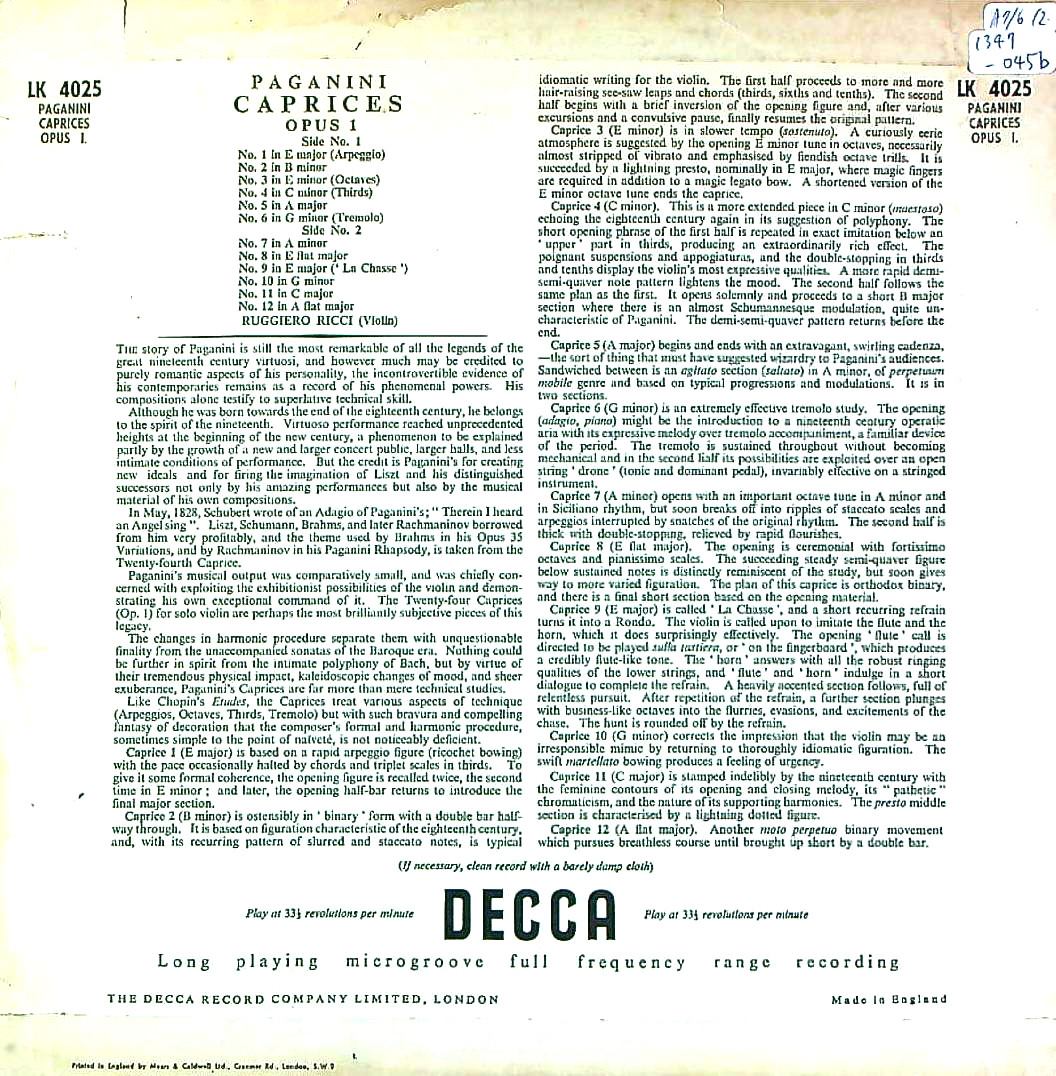 商品コード:1347-045b[DECCA] R.リッチ(vn) / パガニーニ:24の奇想曲Op.1Vol.1(1~12番)