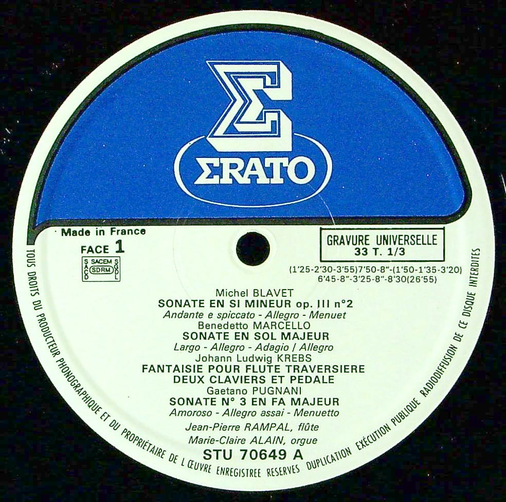 商品コード:1348-040[ERATO] J.P.ランパル(fl) M.C.アラン(org) / フルートとオルガン(全6曲)/ミシェル・ブラヴェ, マルチェッロ 他