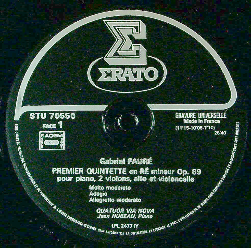 商品コード:1348-033c[ERATO] J.ユボー(pf) ヴィア・ノヴァQt. / フォーレ:Pf五重奏曲1, 2番