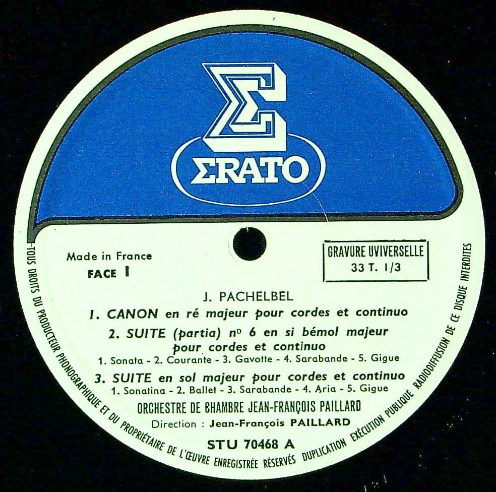 商品詳細:名曲パッヘルベルのカノンはSTU紺竪琴レーベルがオリジナル。その後Σレーベルに。STEは存在しない。A面にパッヘルベル3曲、B面にJ.F.ファッシュの3曲計6曲収録。カノンは短い曲なので、このように別の曲を含んだLPか1曲のみのEPしか選択肢がない。同ERATOにリステンパルトのアルビノーニのアダージョがあったが、それに並ぶ決定盤。ゆったりしたテンポと後ろで小さく響くチェンバロのアクセントが、曲にアクセントを付け格調高いカノンを実現した。他の演奏もおまけ以上。パッヘルベルの「カノン」はアルビノーニの「アダージョ」と並ぶ知られたバロックの名曲として有名。「カノン」には「アダージョ」のような偽作騒ぎはなく、れっきとしたパッヘルベルの作品である。但し「アダージョ」は本来『カノンとジーグ ニ長調』として2曲が連続されて演奏されるべき曲である。理由は「3つのヴァイオリンと通奏低音のためのカノンとジーグ ニ長調」が原曲であり、ベルリン州立図書館にMus.MS 16481/8と番号付けられている19世紀の写本が唯一残されている。この写本はあと2曲の室内組曲を含む。かつてベルリン芸術大学に別の写本があったが失われた。カノンとジーグで1組になっており、カノンの次にジーグが演奏される。ヴァイオリン3つと通奏低音(チェンバロ)の編成で書かれている。このカノン(ジーグ抜きで)は1919年に学者のグスタフ・ベックマンがパッヘルベルの室内楽に関する論文の中にスコアを載せる形で初めて出版された。ベックマンの研究を支持した古楽研究者で編曲者のマックス・ザイフェルトは、1929年にカノンとジーグを編曲して自分のオルガヌム・シリーズの一つとして出版した。しかしザイフェルト版には原曲にはない多数のアーティキュレーションと強弱法の記号が加えられていた。更にザイフェルトは自分が正しいと考えるテンポを指定したが、後の研究ではこの速度は支持されていない。カノンはアーサー・フィードラーによって1940年に初めて録音された。1968年、ジャン=フランソワ・パイヤールの室内管弦楽団によって録音された版(当LP)がこの曲の運命を大きく変えた。これはよりロマン的な演奏スタイルで、それまでの演奏よりも顕著に遅いテンポをとり、パイヤール本人によって書かれたオブリガートのパートを含んでいた。パイヤールの録音は6月にフランスでERATOからLP盤としてリリースされ、パイヤール室内管弦楽団によるヨハン・フリードリヒ・ファッシュのトランペット協奏曲ほかのパッヘルベルとファッシュの作品も含まれていた。以降「カノンとジーグ」は忘れ去られ、「カノン」が通奏低音の伴奏を伴い単独で演奏されるようになる。1970年、サンフランシスコのクラシック音楽ラジオ局がパイヤール盤をかけたところ、リスナーからのリクエストが殺到した。パッヘルベルの「カノン」は特にカリフォルニア州において人気を獲得した。実はパイヤール以前の1961年にK.ミュンヒンガー指揮シュトゥットガルト室内o.(ミュンヒンガー編)がDECCAに録音しており、DECCAでも人気に乗じて、「パッヘルベルのカノン:この曲を有名にしたレコード、および他のバロック名曲集」として再版して1976年のクラシック・アルバム・ベスト・セラーを記録した。パイヤール盤は1980年の映画『普通の人々』で突出して使われた。1983年初出の山下達郎『クリスマス・イブ』にも、この旋律が間奏にて引用されている。当LPは「カノン」の世界的ヒットの契機となった歴史的LPである。パイヤールの編曲の勝利といえるだろう。