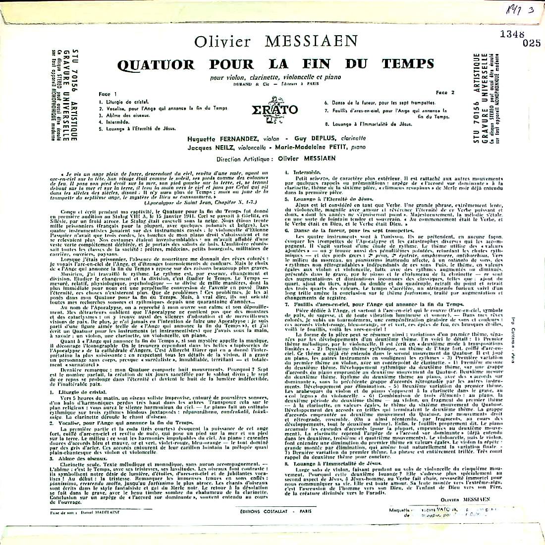 商品コード:1348-025[ERATO] H.フェルナンデス(vn) G.デュプリュ(cl) J.ネイルス(vc) M.M.プティ(pf) / メシアン:世の終りのための四重奏曲