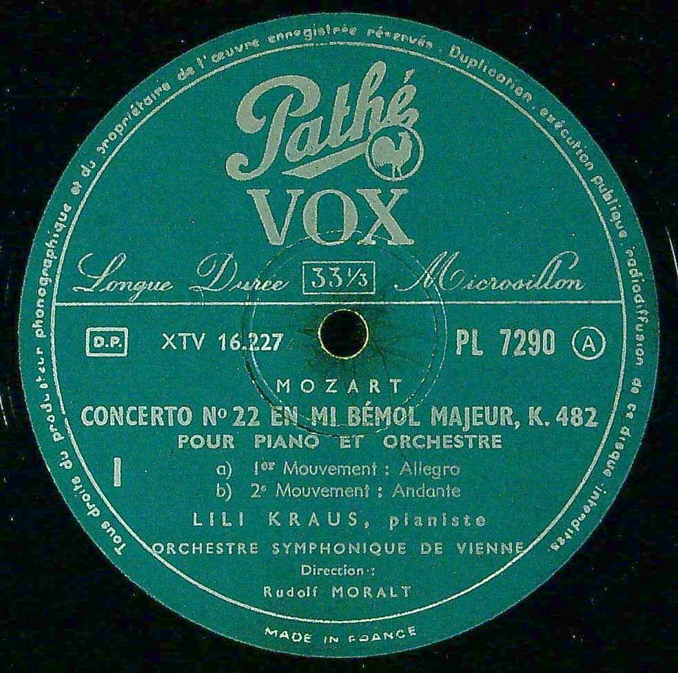 商品コード:1348-019[Pathé-VOX] L.クラウス(pf)/ モーツァルト:Pf協奏曲22番K.482, ロンドK.382