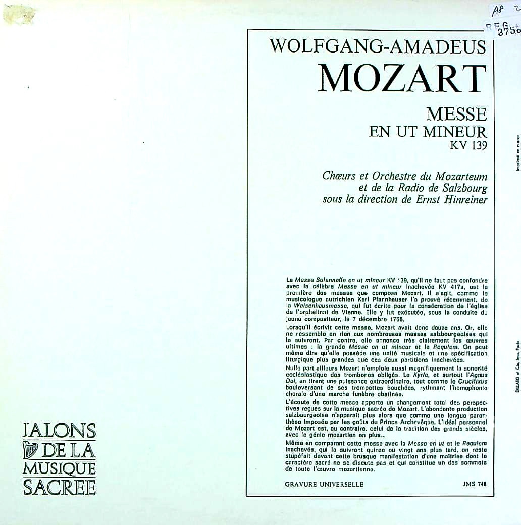 商品コード:REG-3756[仏JALONS DE LA MUSIQUE] E.ヒンライナー指揮/ モーツァルト:孤児院ミサK.139
