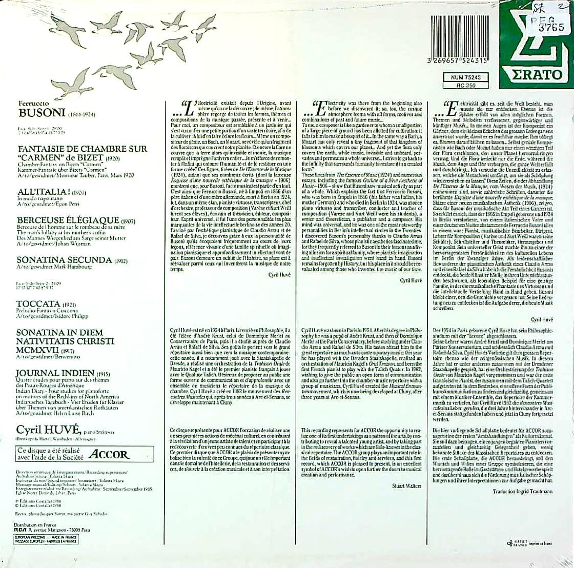 作品名:ブゾーニ:悲歌的子守歌, トッカータ, ソナチネ4番~「キリスト生誕1917年の日」 他