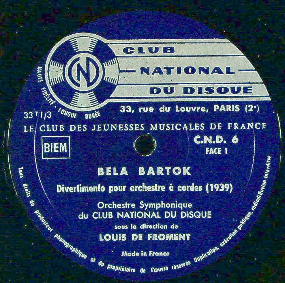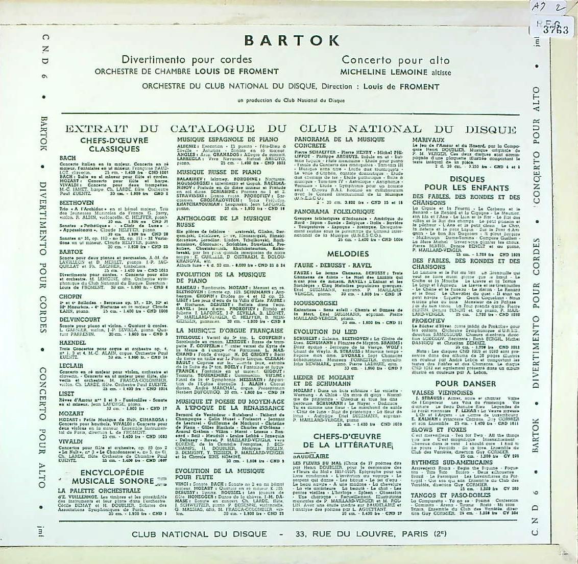 商品コード:REG-3763[仏Club National de Disques] M.ルモワン(va)/ バルトーク:弦楽のためのディヴェルティメント, Va協奏曲