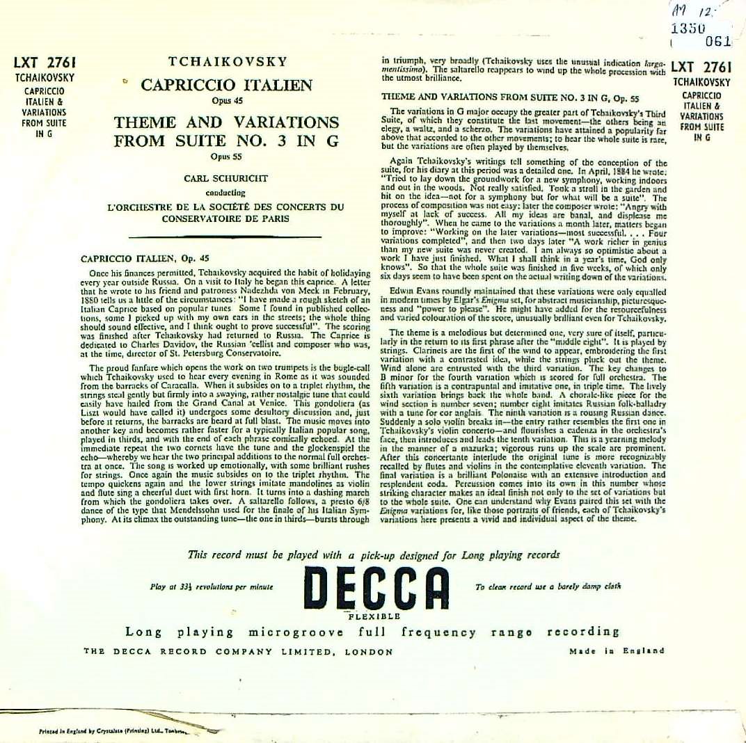 商品コード:1350-061[DECCA] C.シューリヒト/ チャイコフスキー:イタリア奇想曲, 組曲3番~主題と変奏