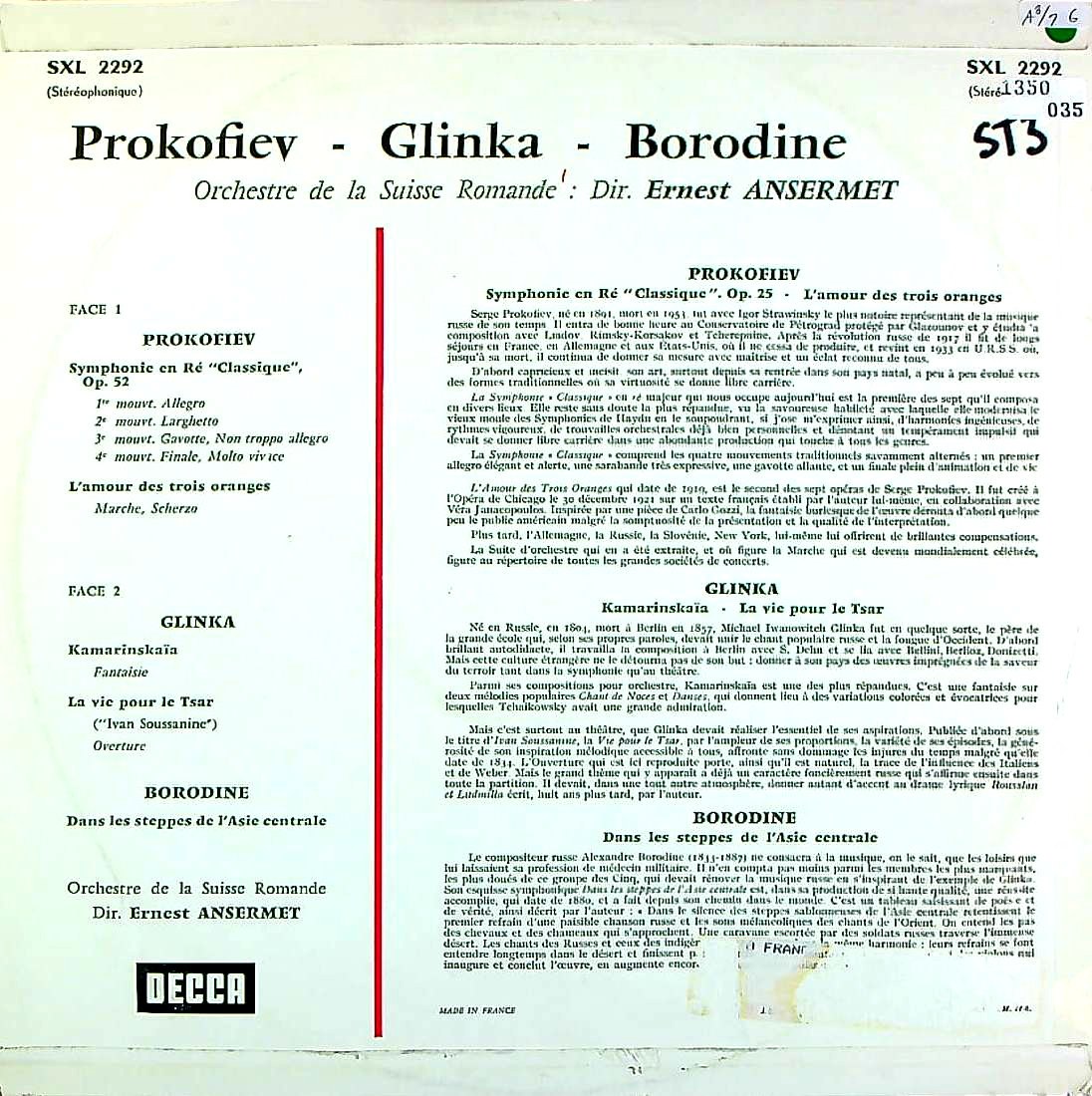 商品コード:1350-035[DECCA] E.アンセルメ/ ロシア管弦楽曲集/プロコフィエフ, グリンカ, ボロディン