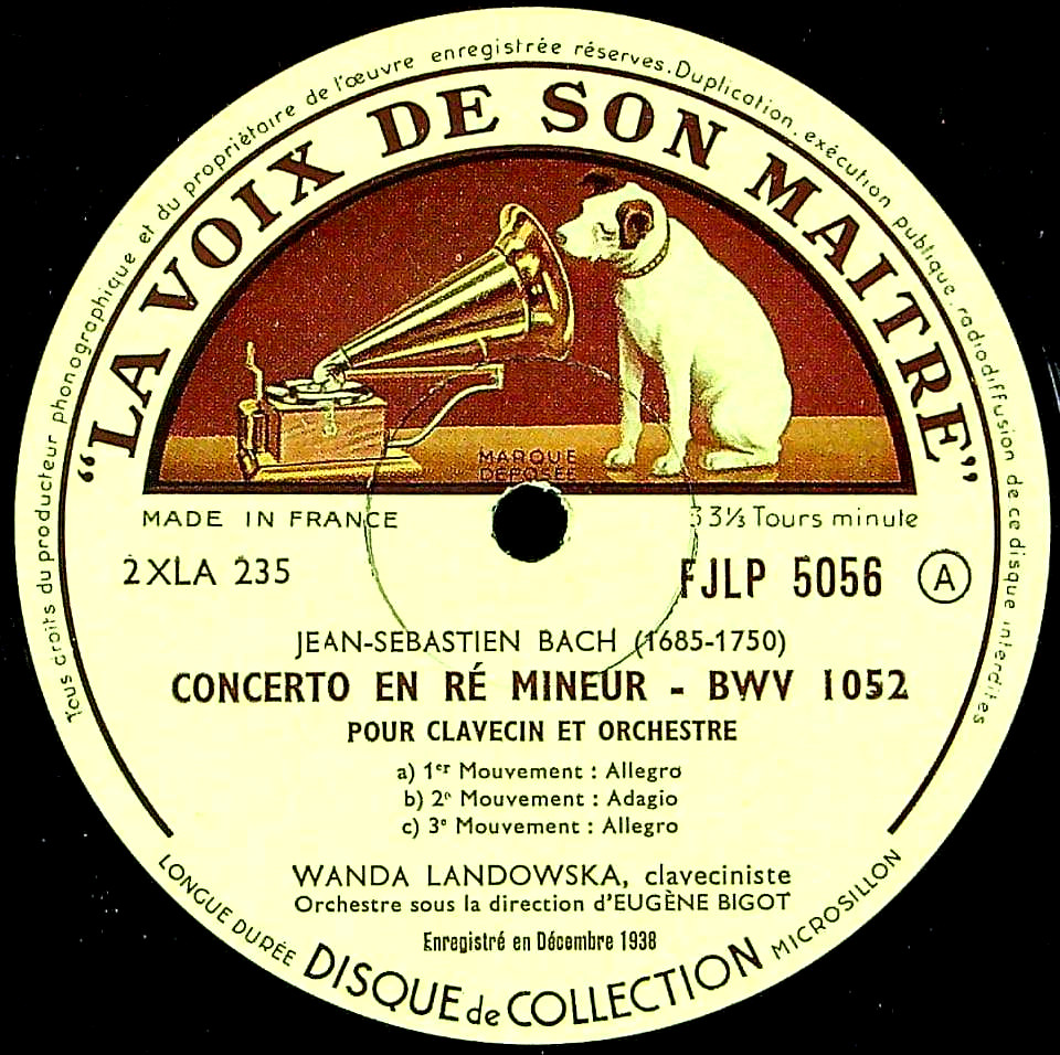 商品詳細:ランドフスカによるバッハ演奏のSPからの復刻LPは平均律クラヴィアやゴルトベルク変奏曲、小品集等数点がCOLHシリーズ以前にFJLPやFALP番号でLP発売されており、それらの番号でかなり良い音質で聴くことができる。しかしこれまでバッハとヘンデルのバッハ:Cemb協奏曲の入荷はなかった。それ以前にそれらの復刻LPが存在する事すら知らなかった。今回FJLP 5056という番号のLPが初めて入荷してその存在を知った次第。バッハはCemb協奏曲1番B.1052で、ヘンデルの2曲もウジェーヌ・ビゴ指揮でビゴ自身のオケによる。調べたデータではバッハが1938年12月、ヘンデルが1937年4月らしい。SP時代の人にとってはこのSPが標準だったのだろうか?しかしエドウィン・フィッシャーも自身のピアノと指揮で1/4/5番を1933-1938年にピアノで録音しており、音源としてはピアノ演奏が先だったようである。そこにランドフスカがチェンバロで登場したという流れだろう。フィッシャーの方は1950年代後期にCOLH番号で大量にプレスされた。しかしランドフスカの1番B.1052はLPではこれまで殆ど見ることがなかったのは何故だろう? ピアノ演奏が市民権を得ていたのであろうか? しかし、ここでやっとチェンバロ演奏の原型ともいえる録音が出てきてほっとしている。ランドフスカは協奏曲でもオケに負けないためにボリュームのあるモダン・チェンバロをプレイエル社に特注したからである。マスタリングができない当時はこの楽器を使って初めて協奏曲録音が可能になったのだと思われる。かくしてフィッシャーのピアノに対抗するチェンバロ版が登場した。何方がその後覇者となったのかは歴史を見れば明らかである。ソロだけでないランドフスカのバッハに興味のある一部の方にこの珍しい初期LPを是非お薦めしたい。