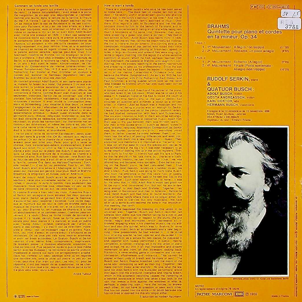 商品コード:REG-3788[仏VSM] R.ゼルキン(pf) ブッシュQt. / ブラームス:Pf五重奏曲