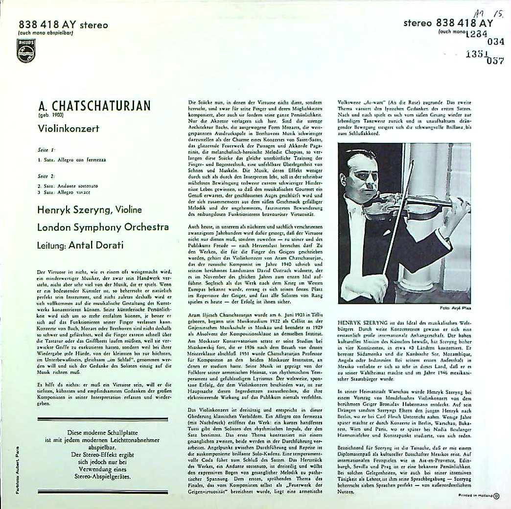 商品コード:1351-057[PHILIPS] H.シェリング(vn)/ ハチャトゥリアン:Vn協奏曲 ニ短調