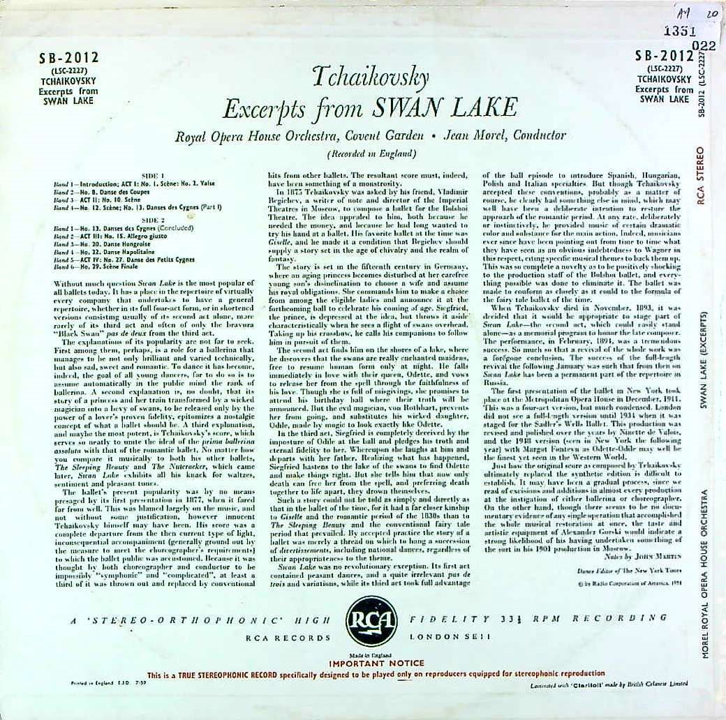 商品コード:1351-022[RCA] J.モレル/ チャイコフスキー:白鳥の湖(ハイライト)