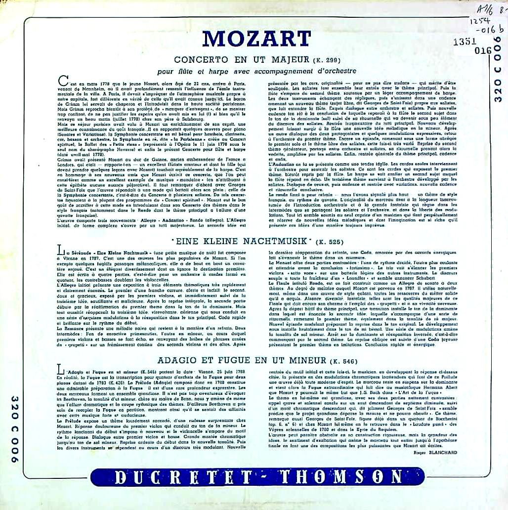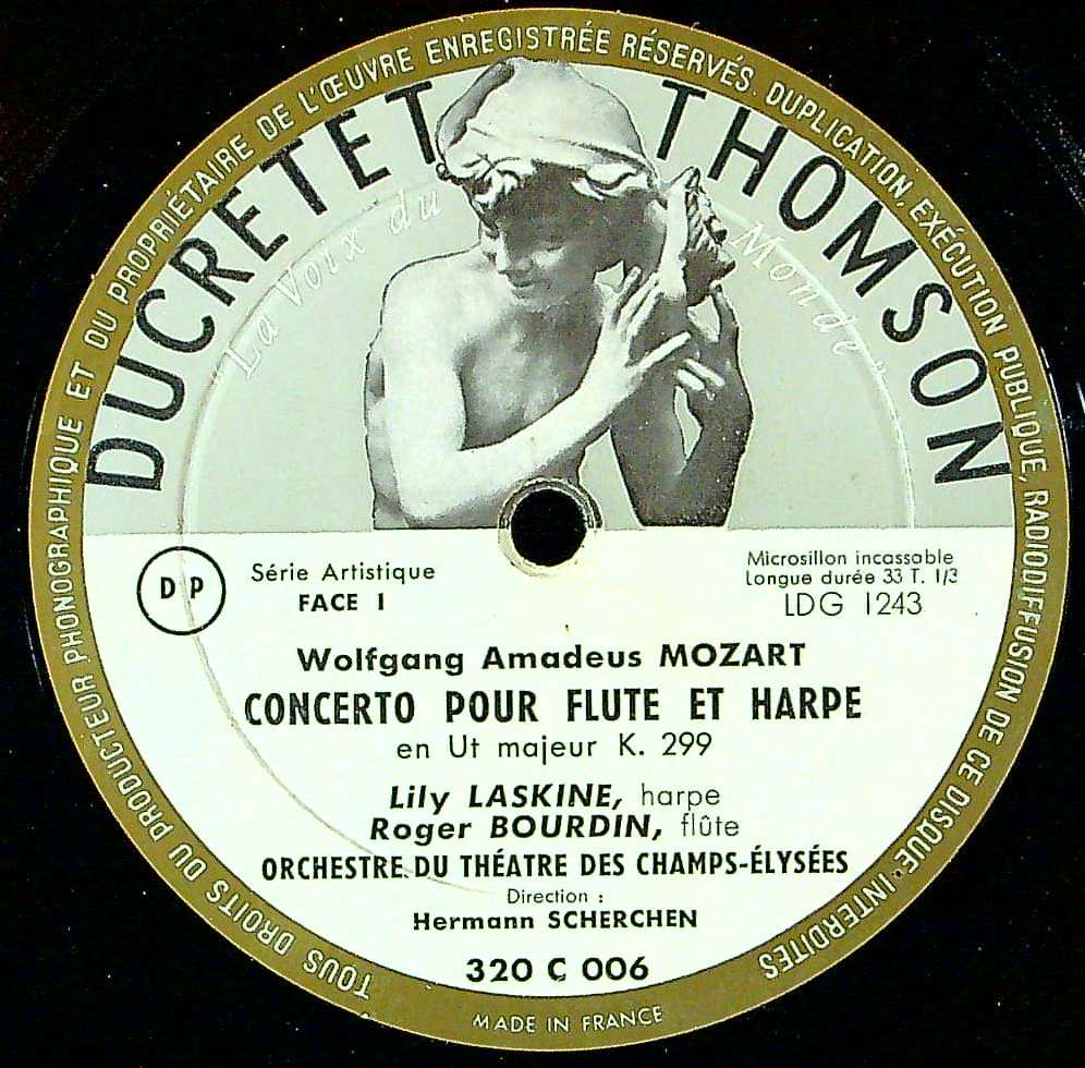 商品コード:1351-016[Ducretet Thomson] L.ラスキーヌ(hp) R.ブルダン(fl) 他/ モーツァルト:Fl・Hp協奏曲K.299, アイネ・クライネK.525 他
