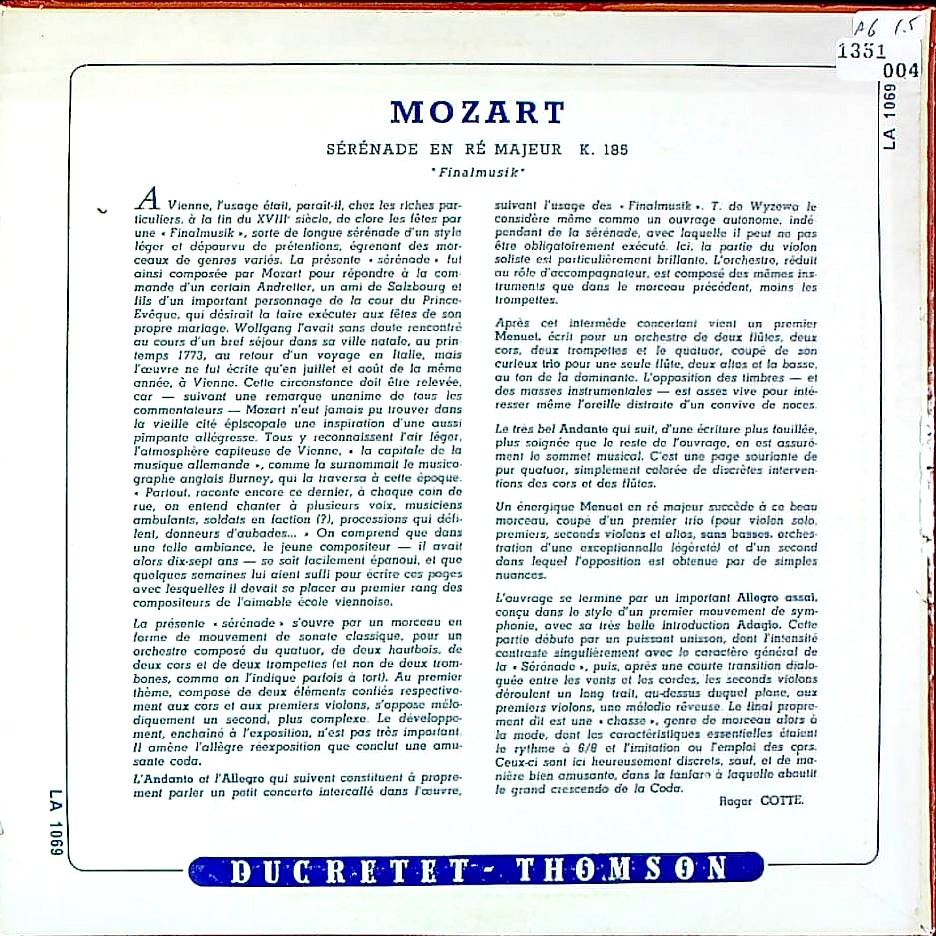 商品コード:1351-004[Ducretet Thomson] B.パウムガルトナー/ モーツァルト:セレナーデ3番K.185「アントレッター・セレナーデ」