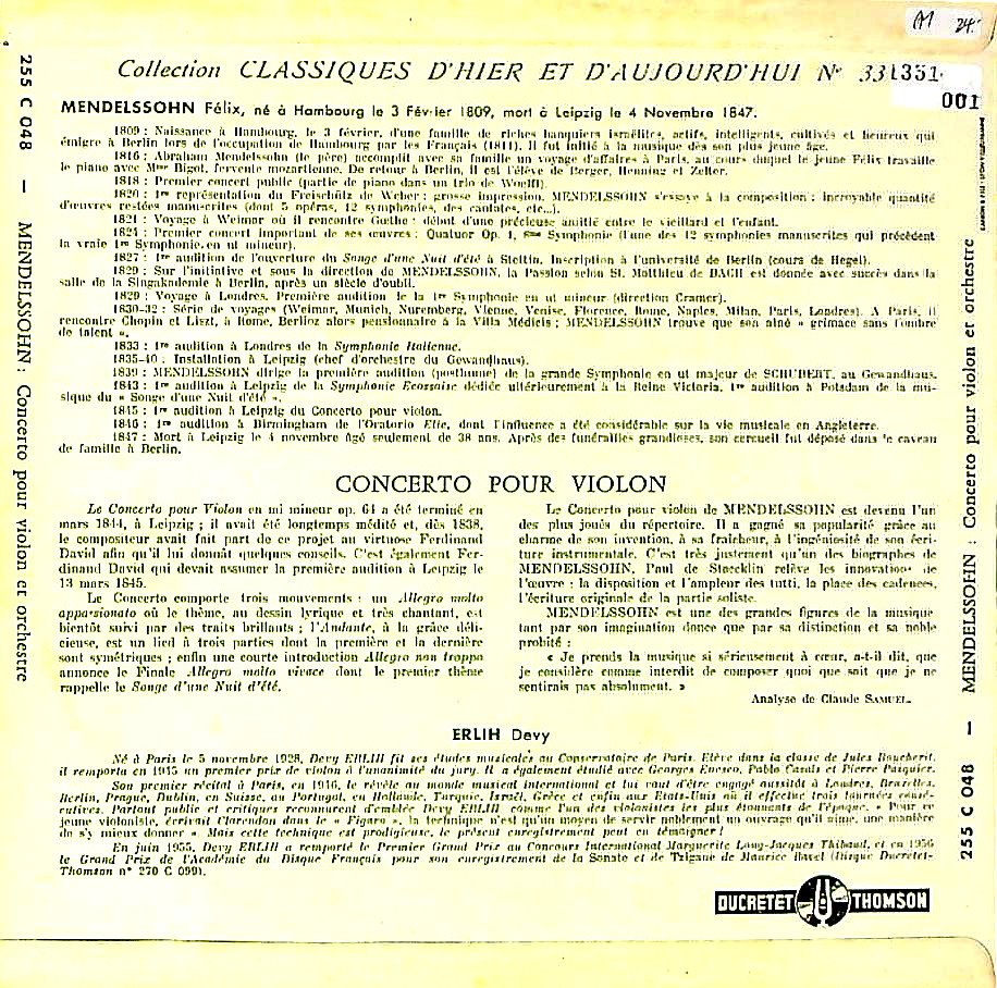 商品コード:1351-001[Ducretet Thomson] D.エルリ(vn)/ メンデルスゾーン:Vn協奏曲